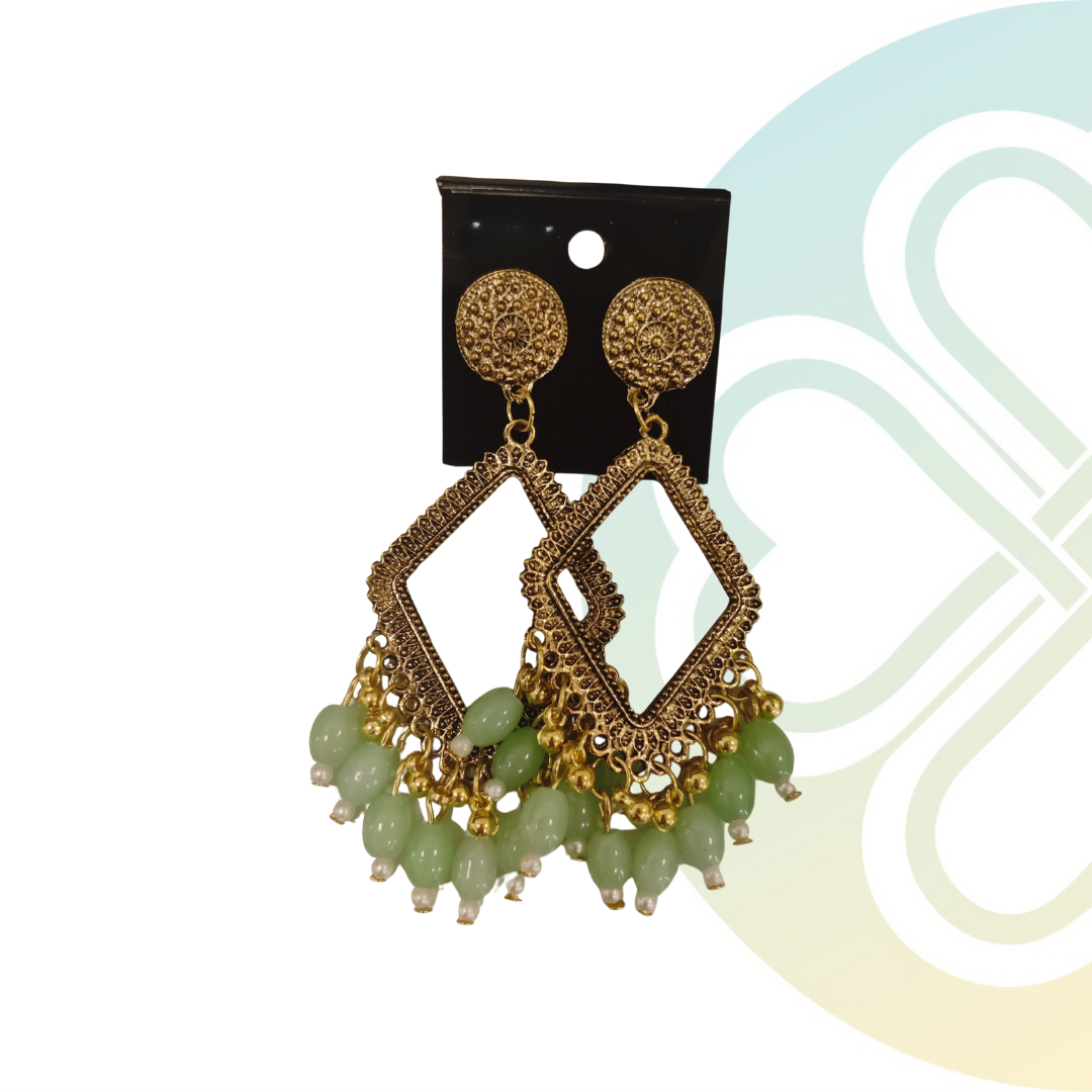 Pastel Green Diamond Moti Jhumka -Gold