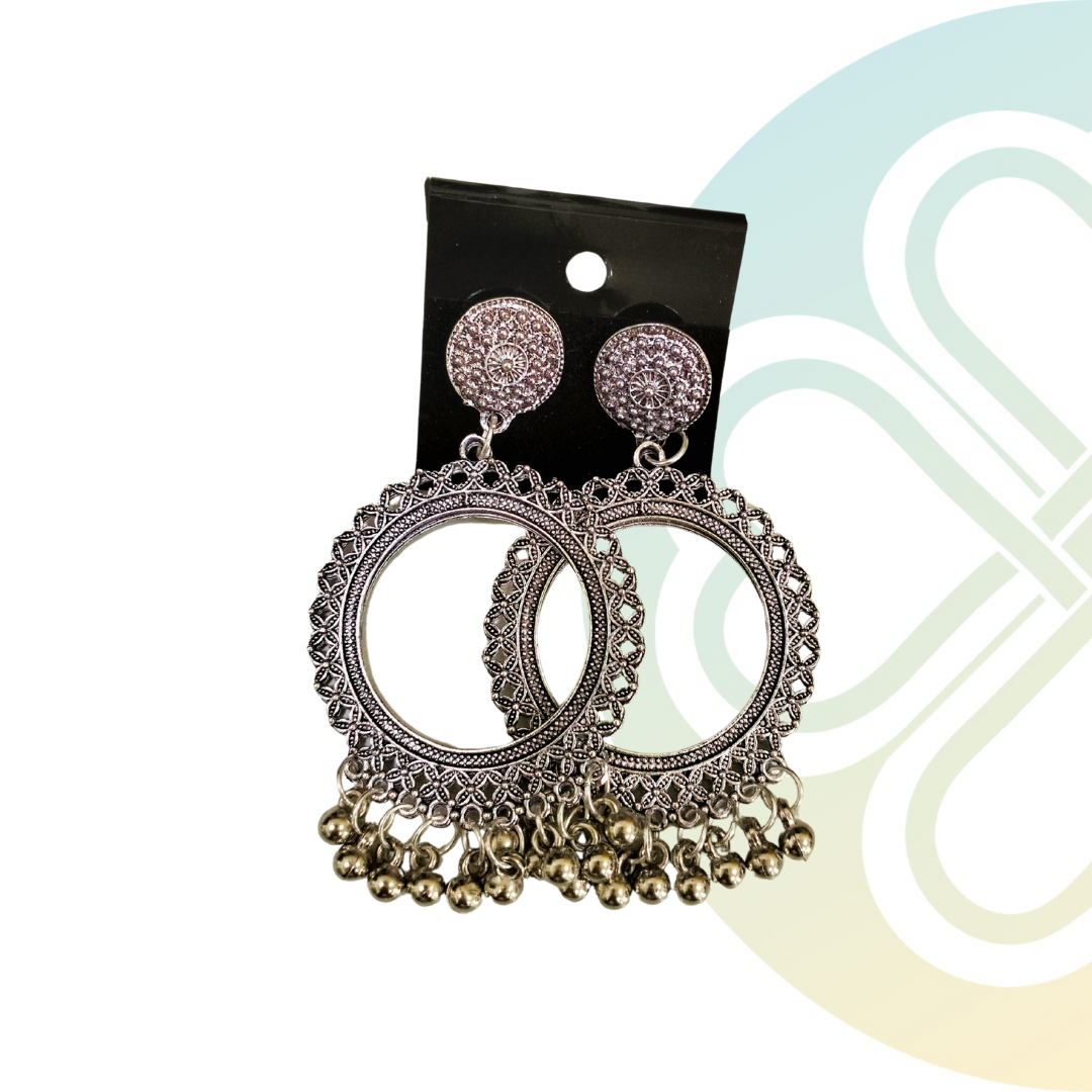 Silver Round Ghungroo Jhumka